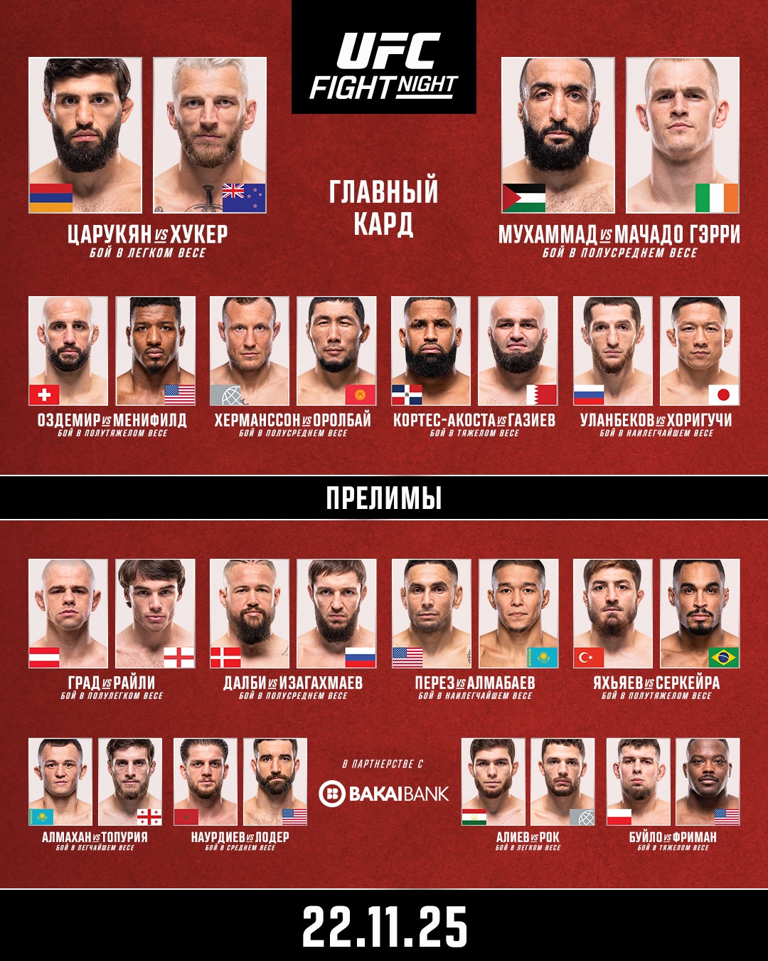 Начало трансляции турнира в 18:00 по Москве, главный кард стартует в 21:00